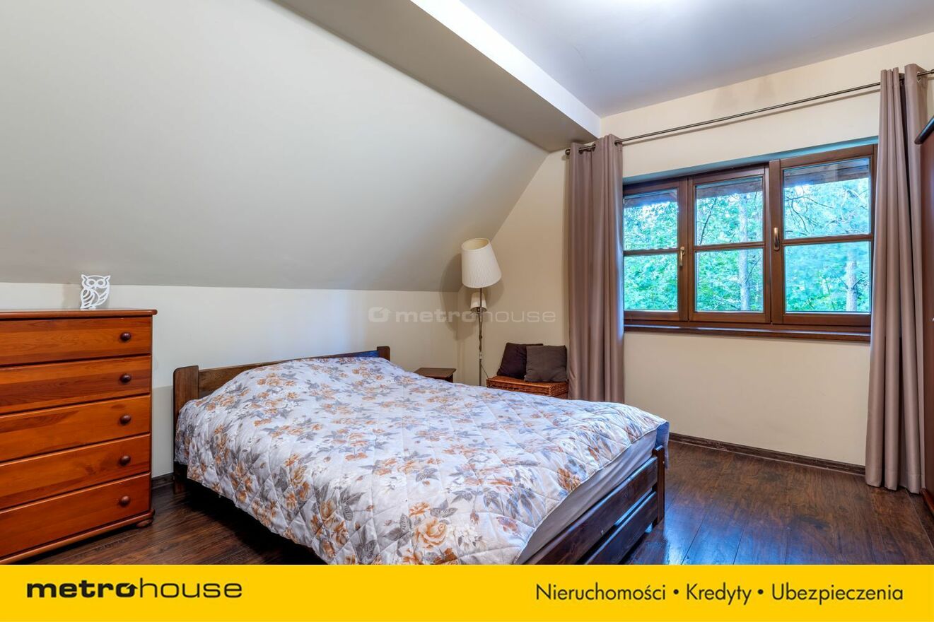 Parter: biuro, łazienka, salon, sypialnia, dodatkowa łazienka, garderoba oraz sauna.