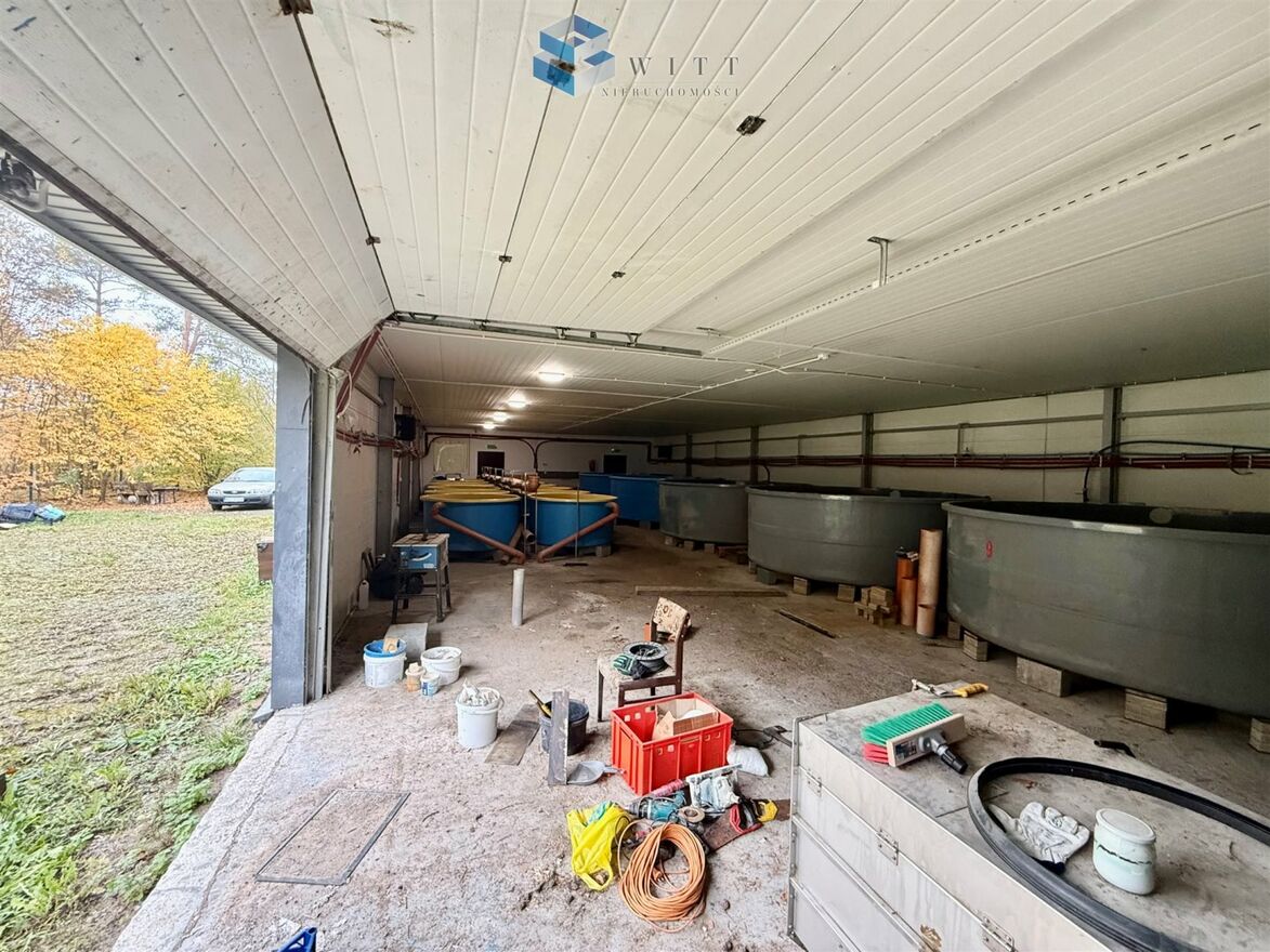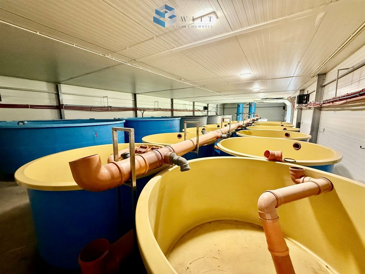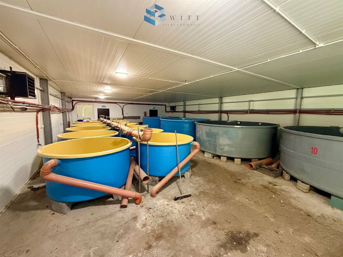 Na działce znajduje się hala w konstrukcji stalowej z płytą obornicką o powierzchni zabudowy 342 m², wybudowana w 2014 roku. Składa się z części głównej gdzie wcześniej funkcjonowała hodowla ryb szlachetnych, części socjalnej oraz kotłowni z piecem na pelet przystosowanym też do palenia drewnem.